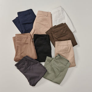 Wij geloven dat een paar chino broeken een noodzaak is in de garderobe van elke vrouw, en de reden is eenvoudig. We hebben jarenlang gewerkt aan het perfectioneren van de chino broek zodat deze perfect past bij alle vrouwen. Onze chino's hebben een nauwgezet proces doorlopen en zijn niet lukraak samengesteld. Alles, van het juiste gevoel van de stof tot het vinden van het precieze recept voor een goede pasvorm, is een focus geweest, waardoor de aandacht voor detail van onze chino's van topklasse is.