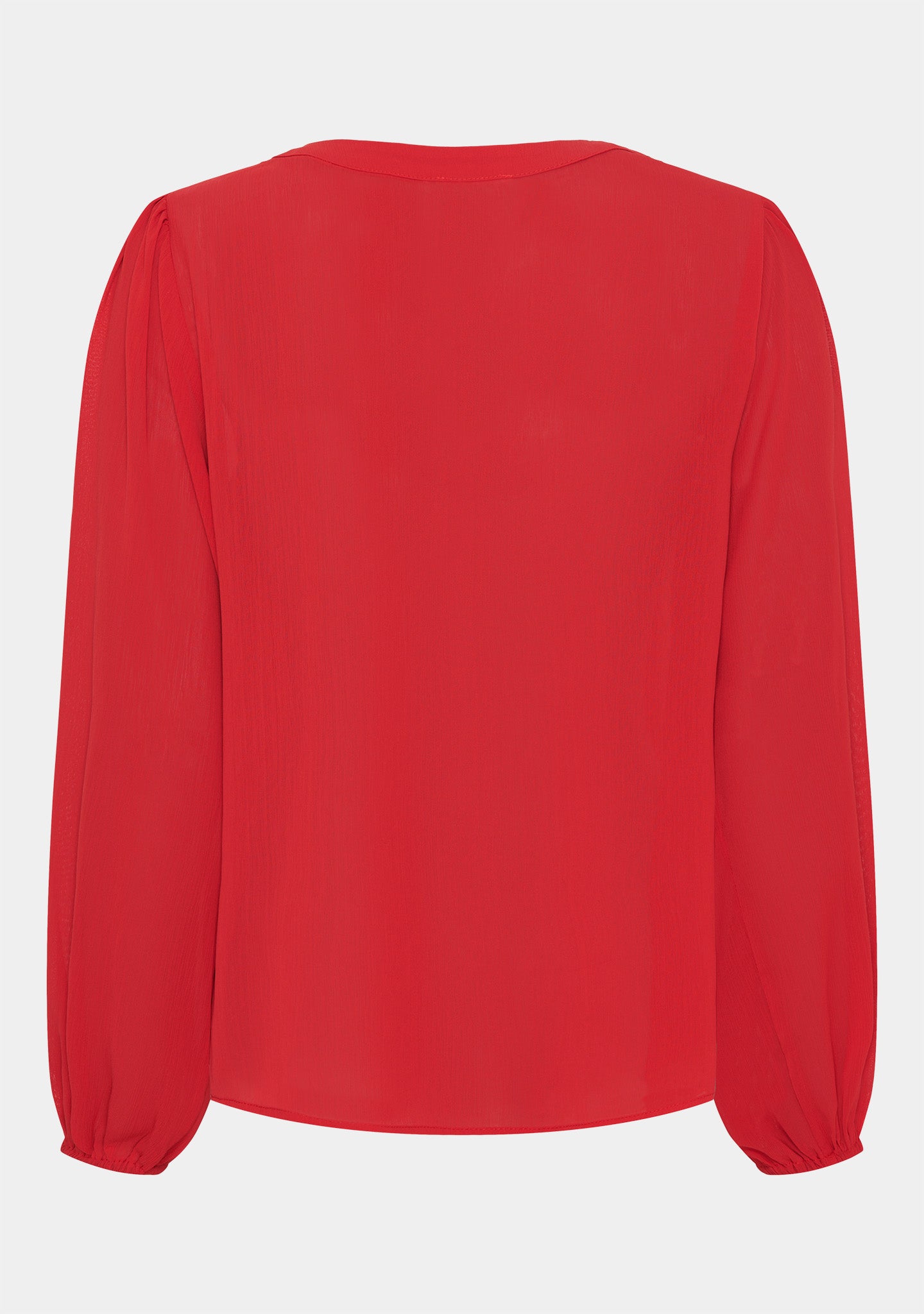 The most beautiful blouse full of flattering details. The feminine V-neck has a charming wide ruffle trim, and loose-fitting sleeves with an elastic trim. The semi-transparent material gives you a blouse with a cool and elegant vibe. The blouse goes perfectly with flare jeans.