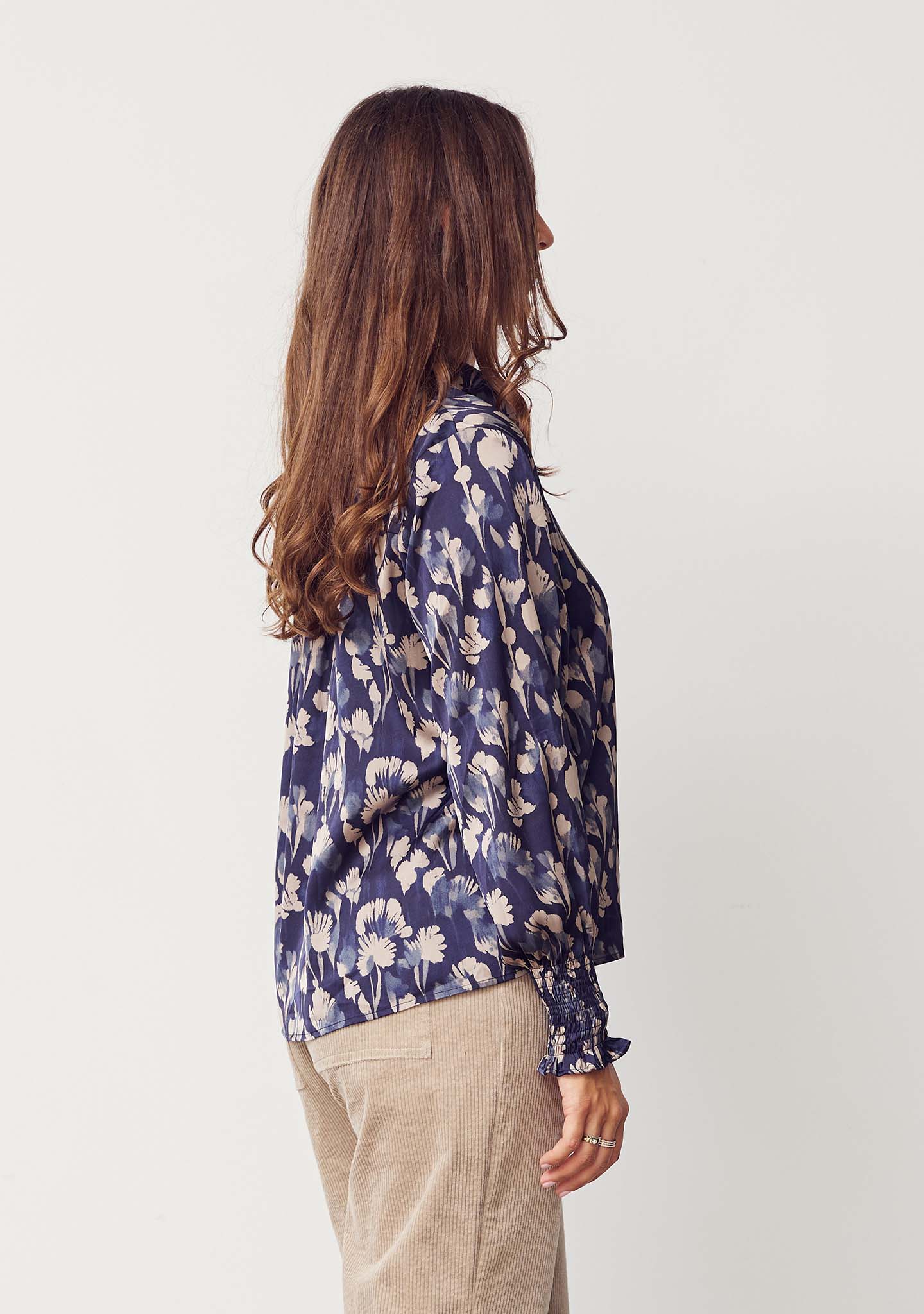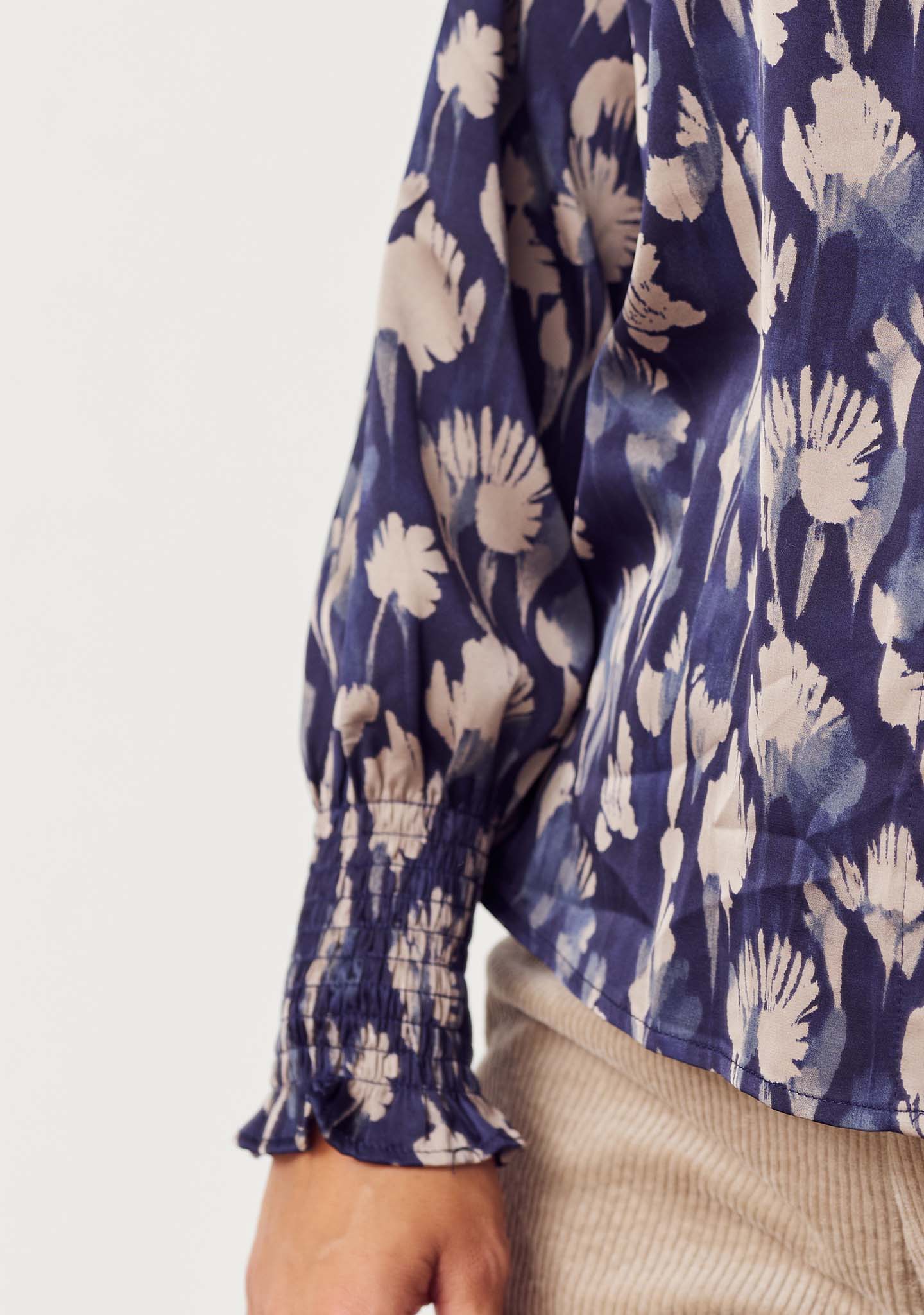Melba Printed Blouse is the perfect shirt blouse with a cool and unique print that will add style to any wardrobe. The blouse features a button closure all the way down, allowing you to style it according to your own taste. Melba Printed Blouse has a classic collar, wide sleeves with elastic smocked cuffs, and an elegant satin look that adds a luxurious feel. With its satin look, this blouse is perfect for both everyday wear and festive occasions.