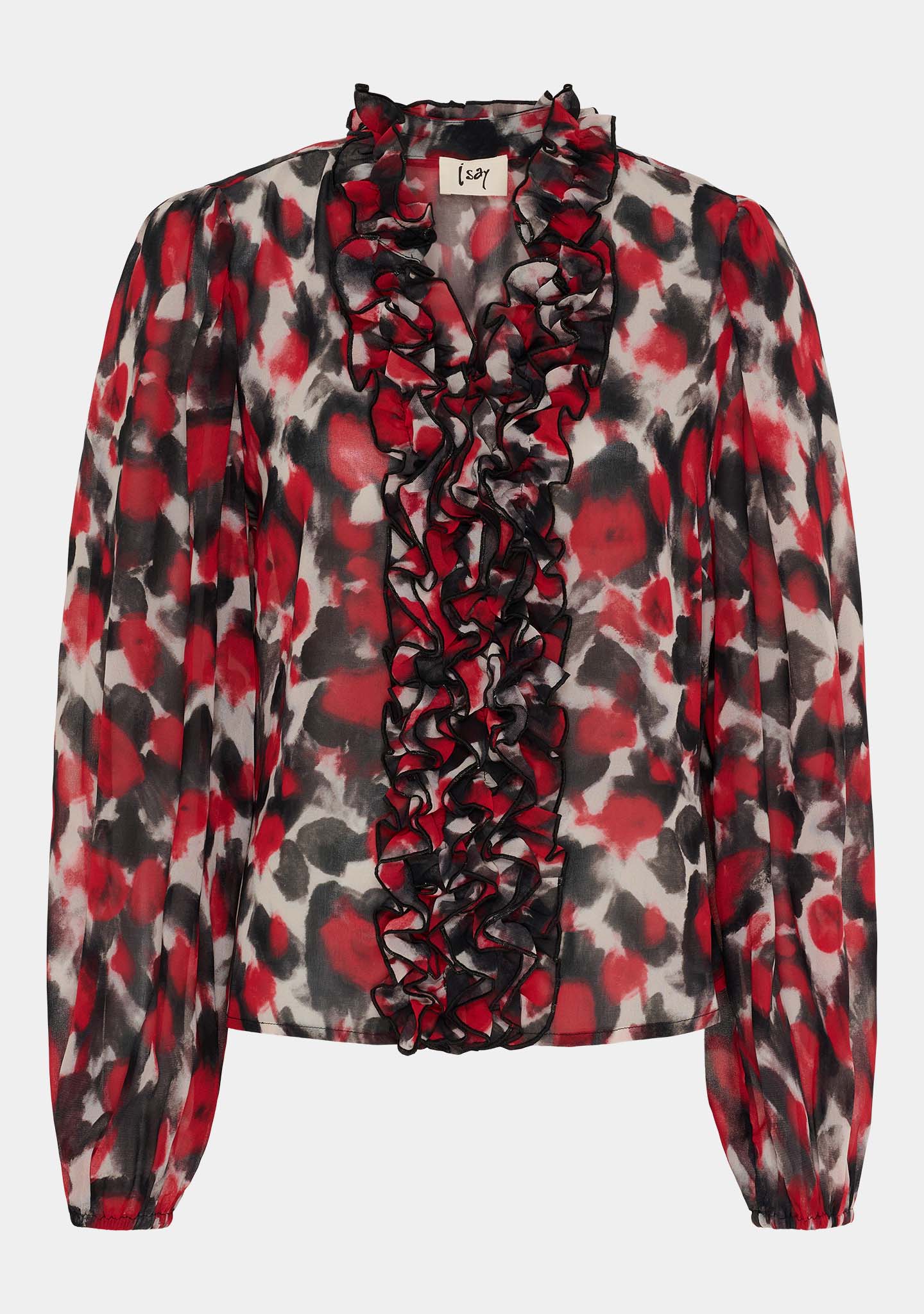 Vibse Ruffle Blouse - Red Abstraction