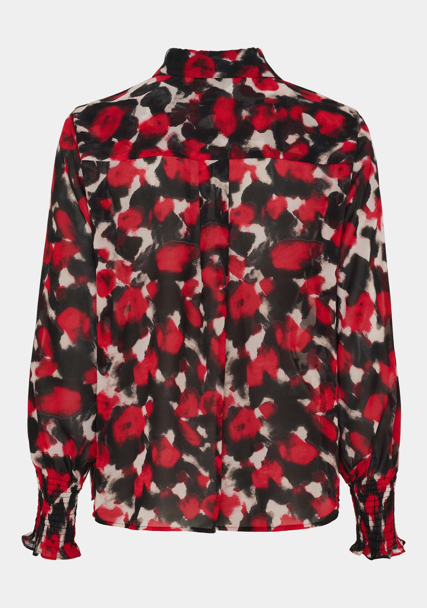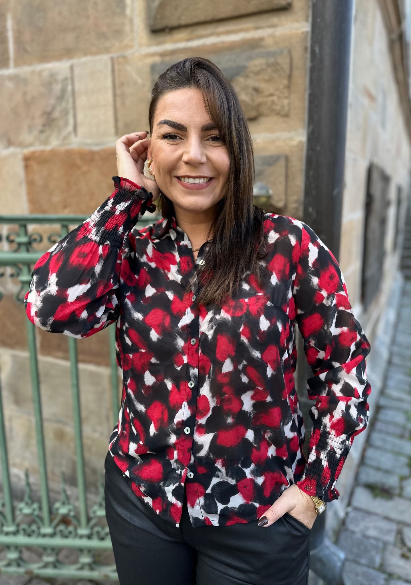 Our elegant Vibse shirt is versatile and can be styled in many ways. This shirt is transparent in its material and has a lovely loose and spacious fit. It features a classic button closure with buttons all the way down and a pointed collar. Vibse shirt has a flattering print and the finest smock details at the sleeve openings, adding a feminine touch. It can be stylishly paired with a pair of pants or a smart skirt, preferably with a pair of classic loafers for a perfectly elegant look.