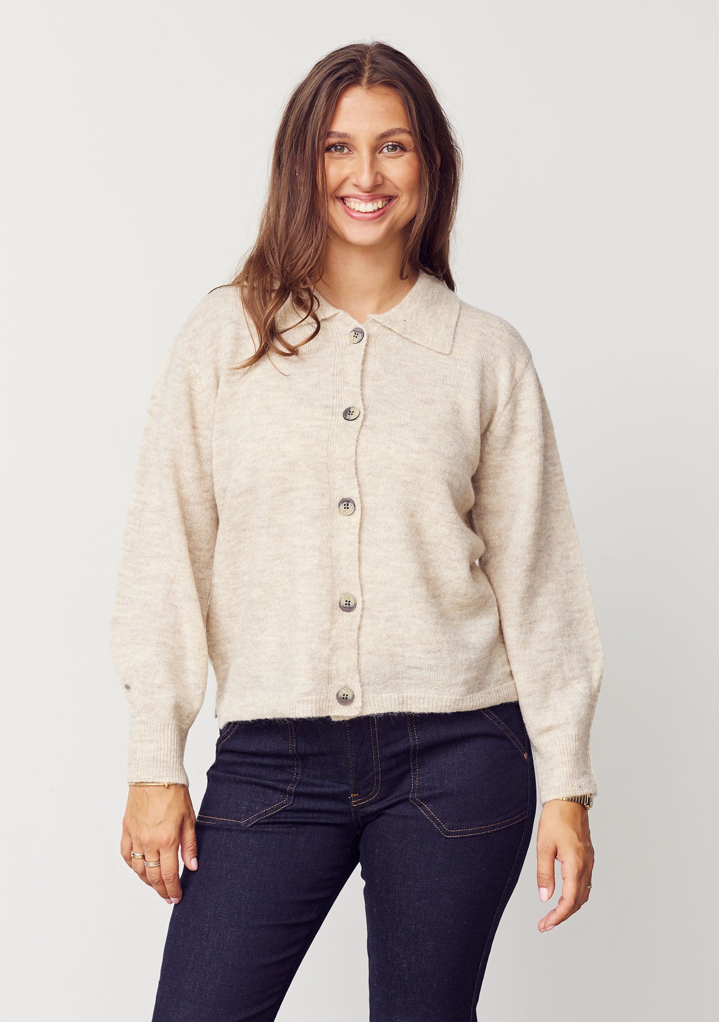 Een goede basic cardigan is een noodzaak in alle kasten, en onze Anna Colar cardigan is geen uitzondering. De cardigan heeft knopen helemaal naar beneden en een relaxte pasvorm met verlaagde schouders. De Anna Colar cardigan is een stijlvolle en korte cardigan die perfect past over een jurk. Het heeft een elegante polokraag, ballonmouwen en is afgewerkt met geribde randen.