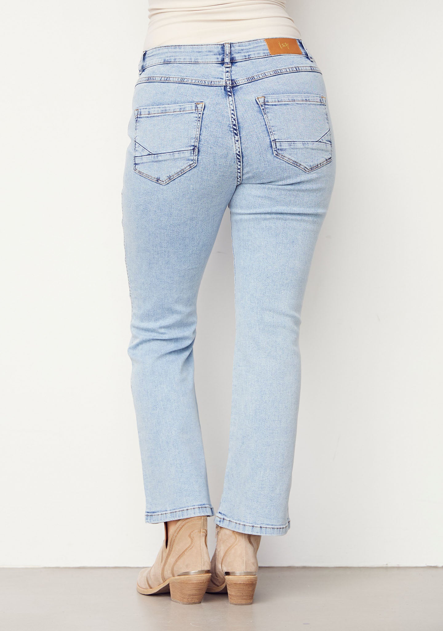 Super stijlvolle, op de jaren 80 geïnspireerde jeans. Ontworpen in een flare-leg pasvorm, ook wel bekend als bootcut, met een medium taille en gemaakt van heerlijk katoen. Het kenmerkende van Como Flare Jeans is dat ze strak zitten van de heupen tot de knieën en dan een brede wijdte hebben bij de broekspijpen, evenals een mooie flair. Deze jeans hebben een vaste voering met riemlussen, twee grote schuine voorzakken en twee achterzakken met coole details. Er is ook een rits met knoopsluiting bovenaan. Met Como Flare Jeans krijg je een paar retro en goed geproportioneerde jeans voor vrouwen die opvallen door de mooie jeansstiksels en wassing. Het comfort is van topklasse met deze jeans en je zult ze de hele dag graag dragen. Voor een ruwe look kun je ze combineren met een getailleerde blouse of een shirt samen met een paar stijlvolle laarzen.
