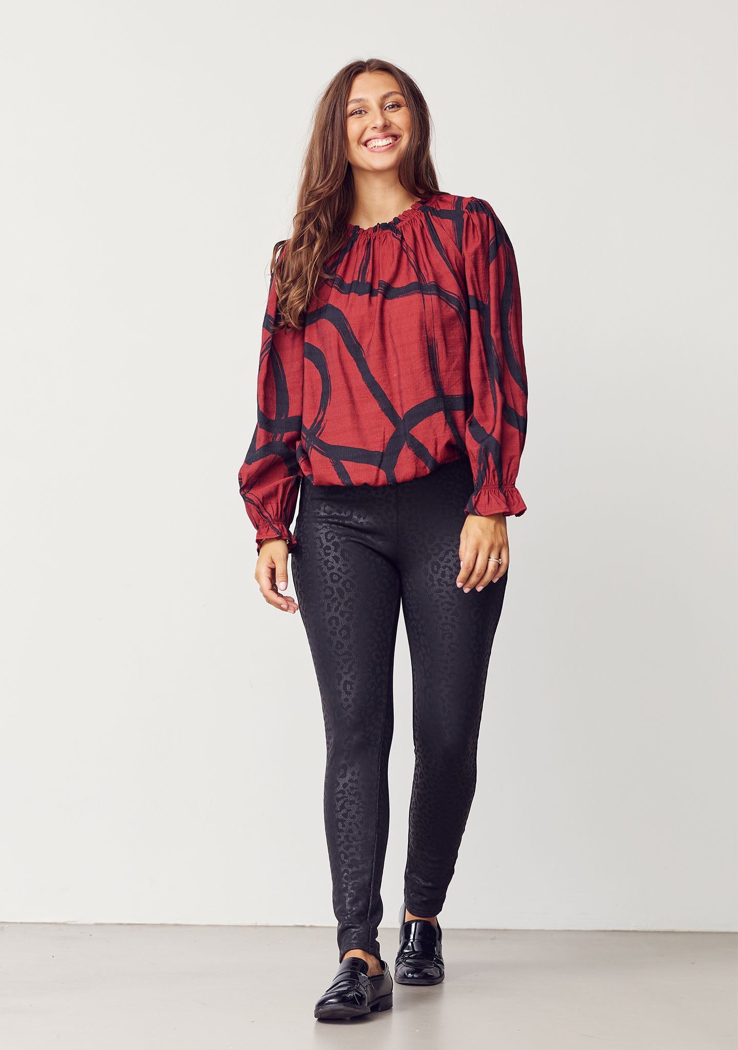 Helena PU Legging is the ultimate must-have for your wardrobe. These leggings have a fantastic leather look with a touch of shine that will make you stand out. The inside is so soft and luxurious against the skin that you'll never want to take them off. The extra touch that Helena PU Legging has is the discreet snakeskin look, adding an exciting twist to your appearance. These leggings are slim fit with a perfect fit that accentuates your curves. They are also stretchy and have an elastic waistband for optimal comfort. Helena PU Legging has a long leg length, suitable for those with long legs or for those who want an extra layer of warmth.