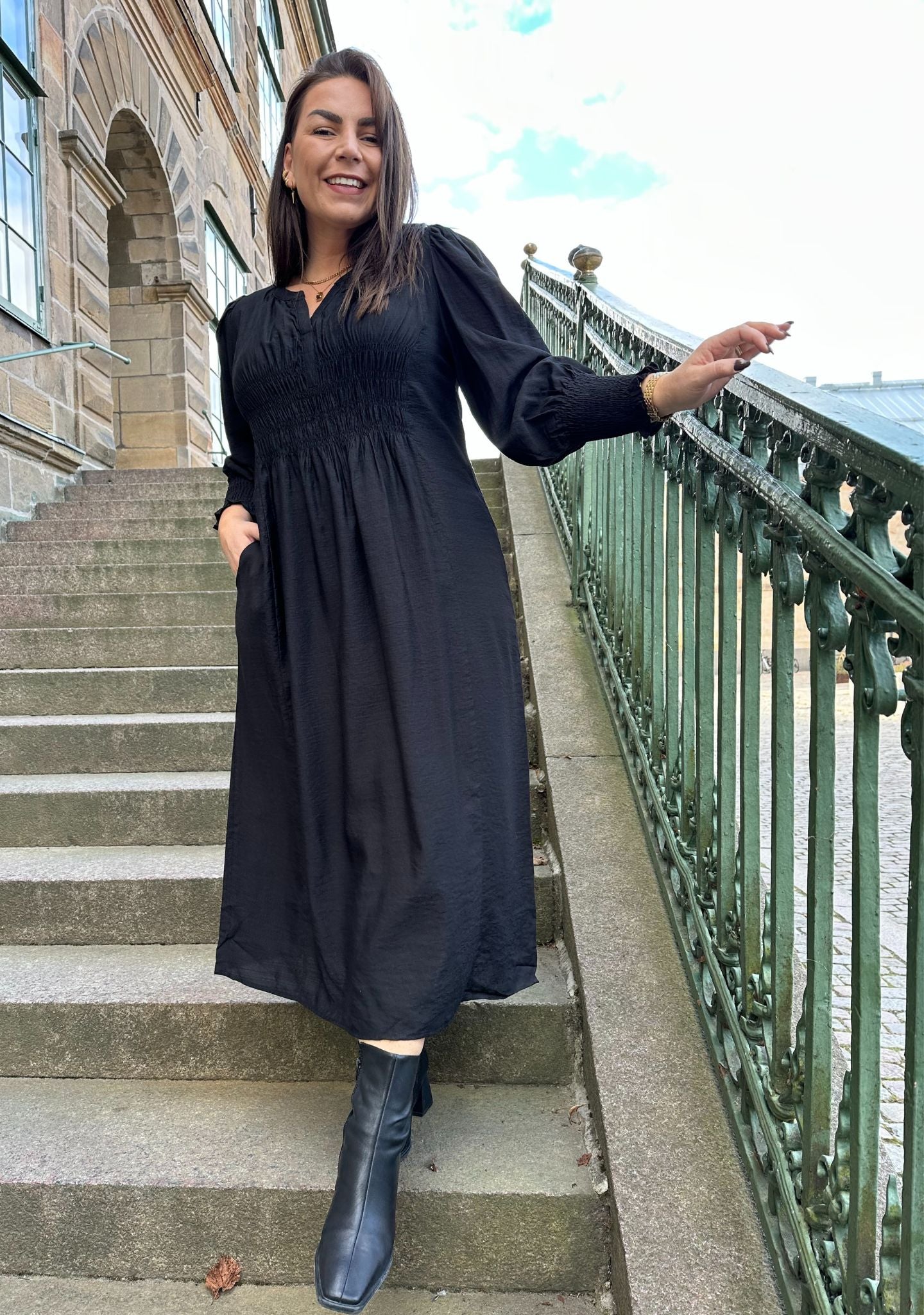 • Smockdetails aan de voor- en achterzijde en bij de manchetten van de mouwen