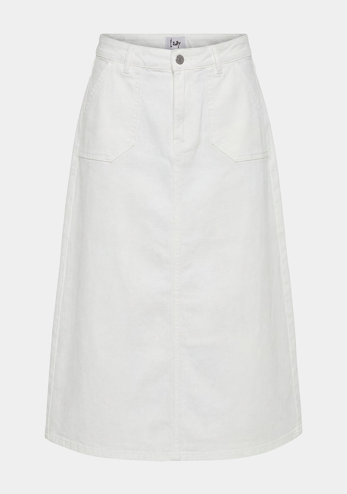 Het is een midi denim rok die je het hele jaar door kunt dragen. Met blote benen en sandalen in de zomer - en met gebreide kleding en laarzen als de seizoenen veranderen.