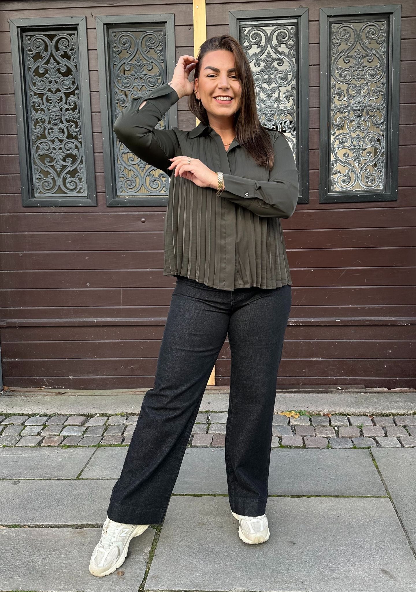 Frida Pleat Shirt kan gedragen worden met alles van jeans tot nette broeken of rokken.