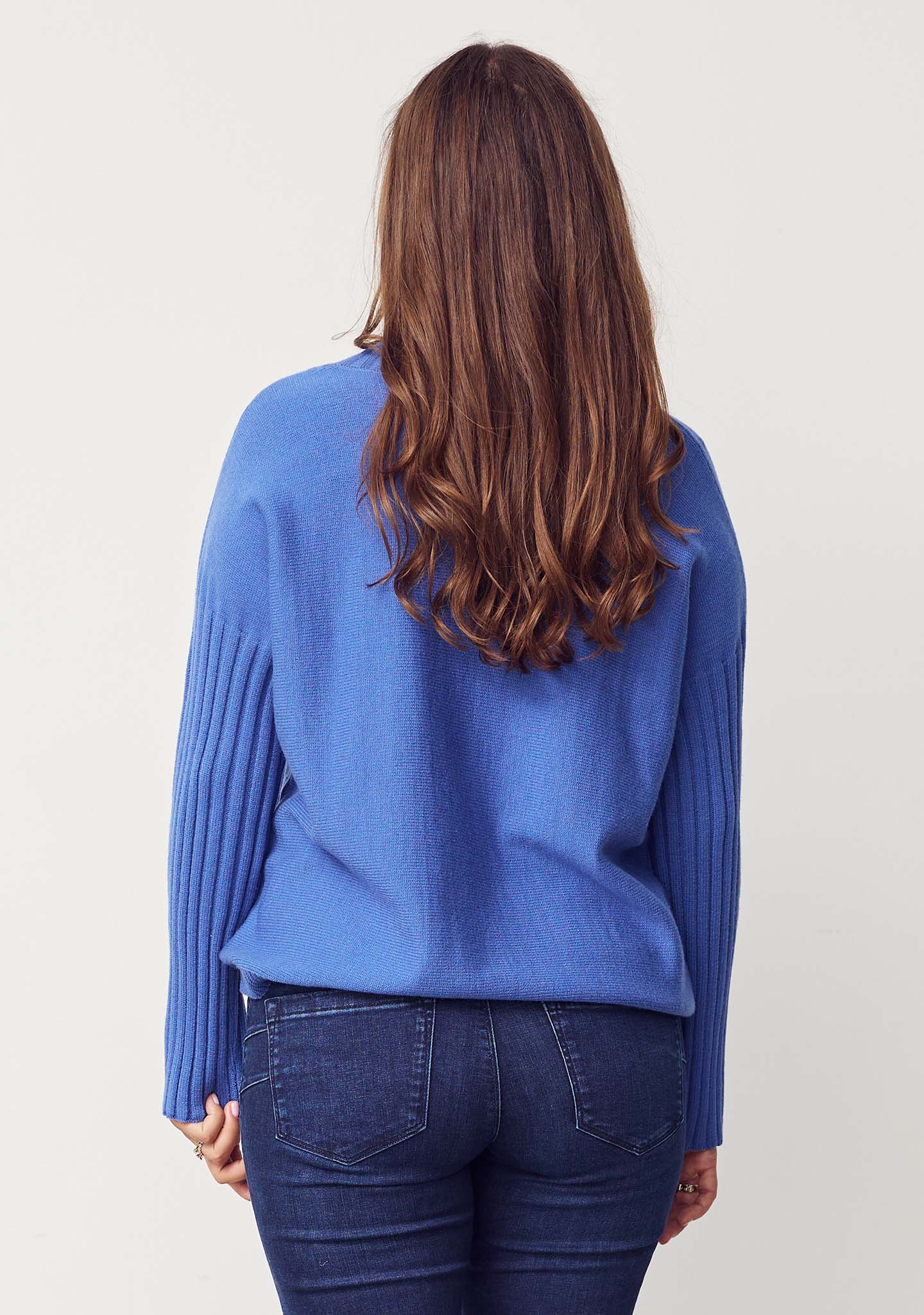 • Lange mouwen met brede ribstructuur