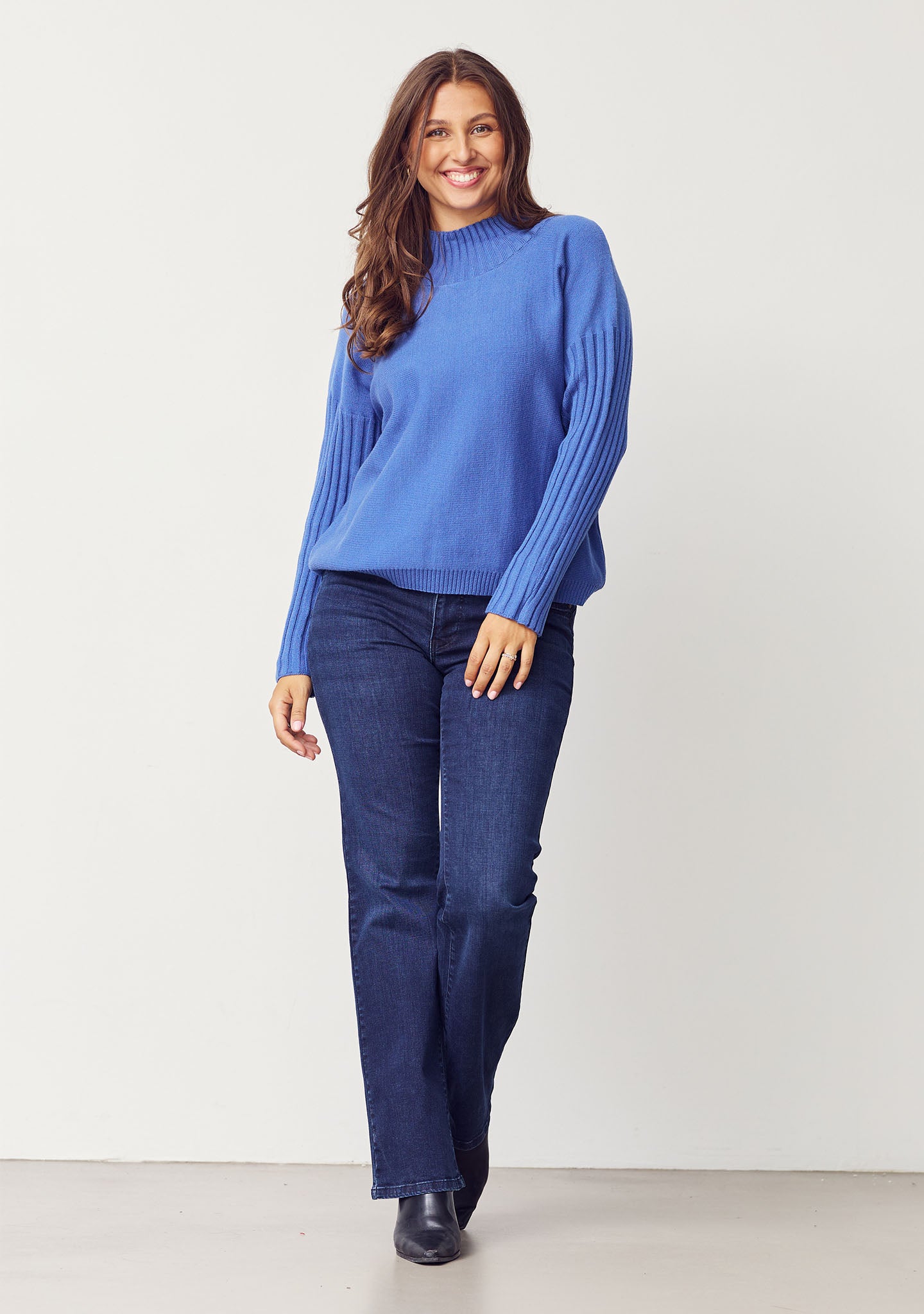 • Gebreide trui met hoge ribhals