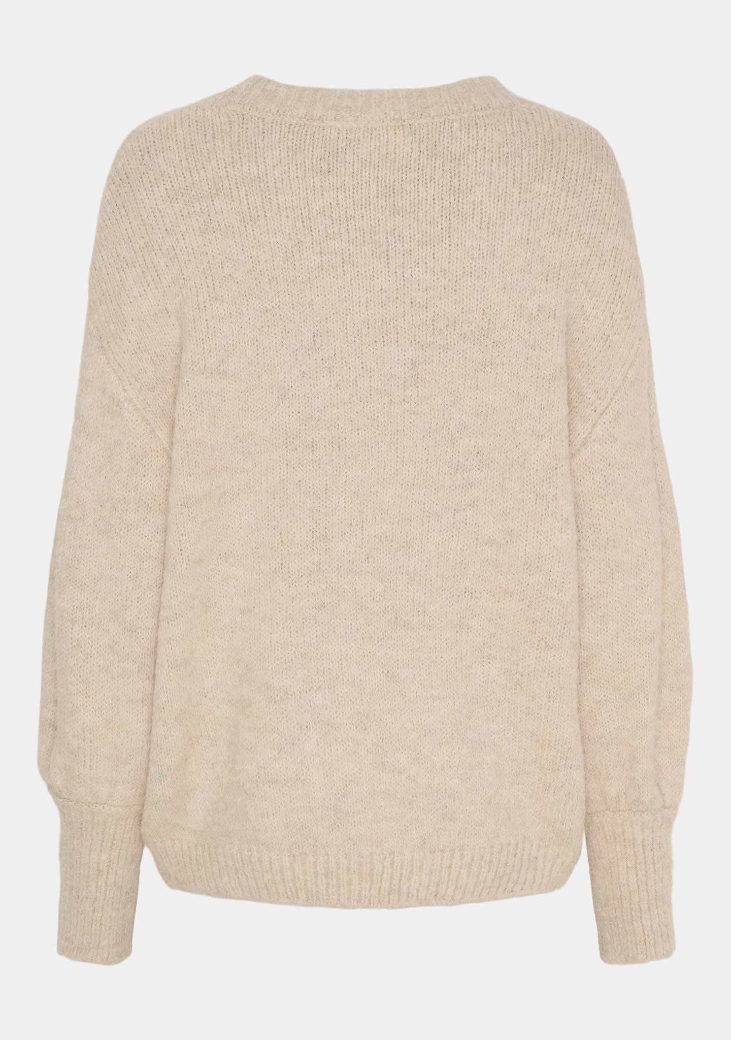 De Kaho Knit Pullover is een zachte en veelzijdige gebreide trui met een eenvoudig, tijdloos ontwerp. De ronde hals en de lange mouwen met brede geribbelde manchetten creëren een ontspannen en klassieke look die kan worden gestyled met zowel jeans als rokken.