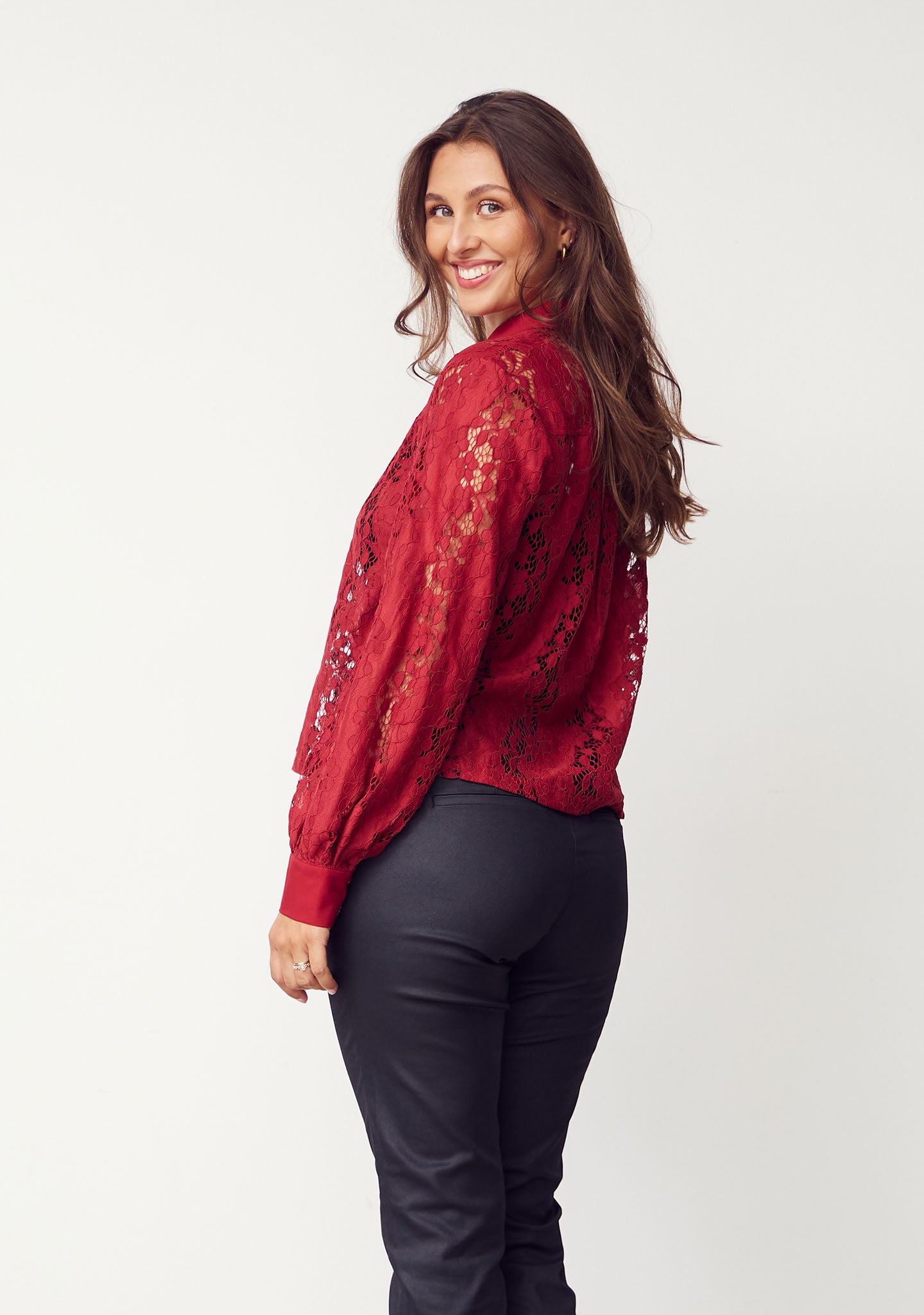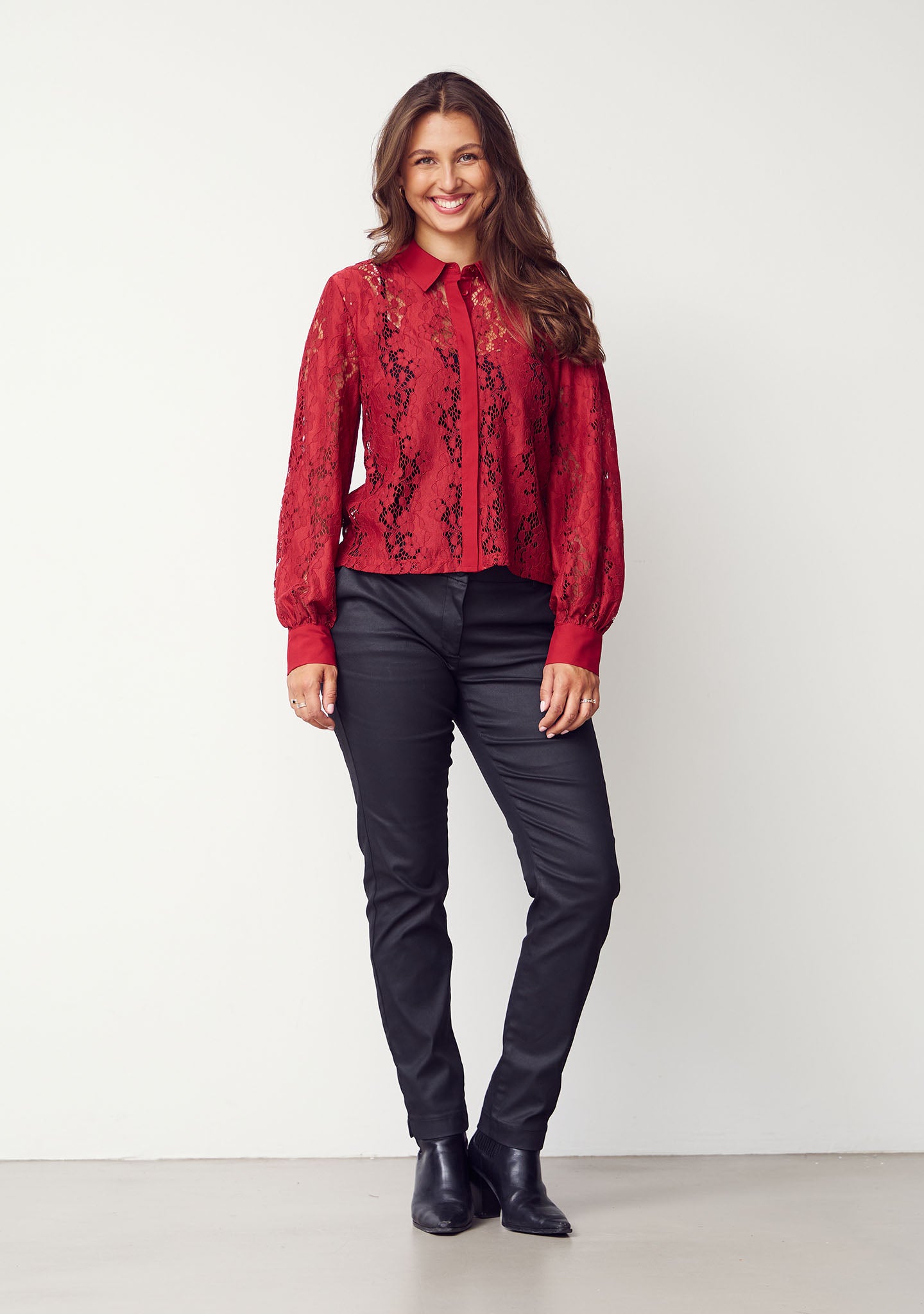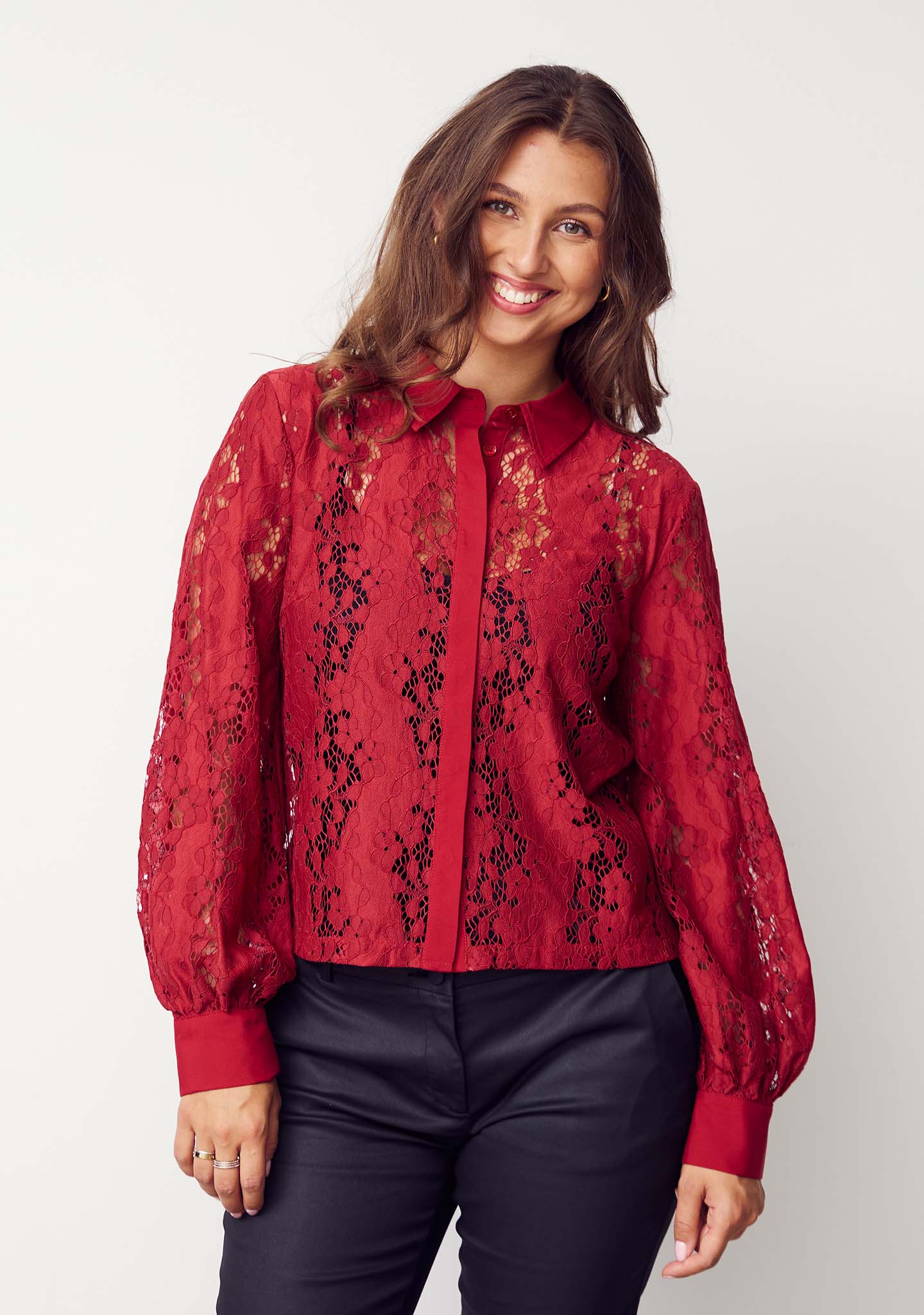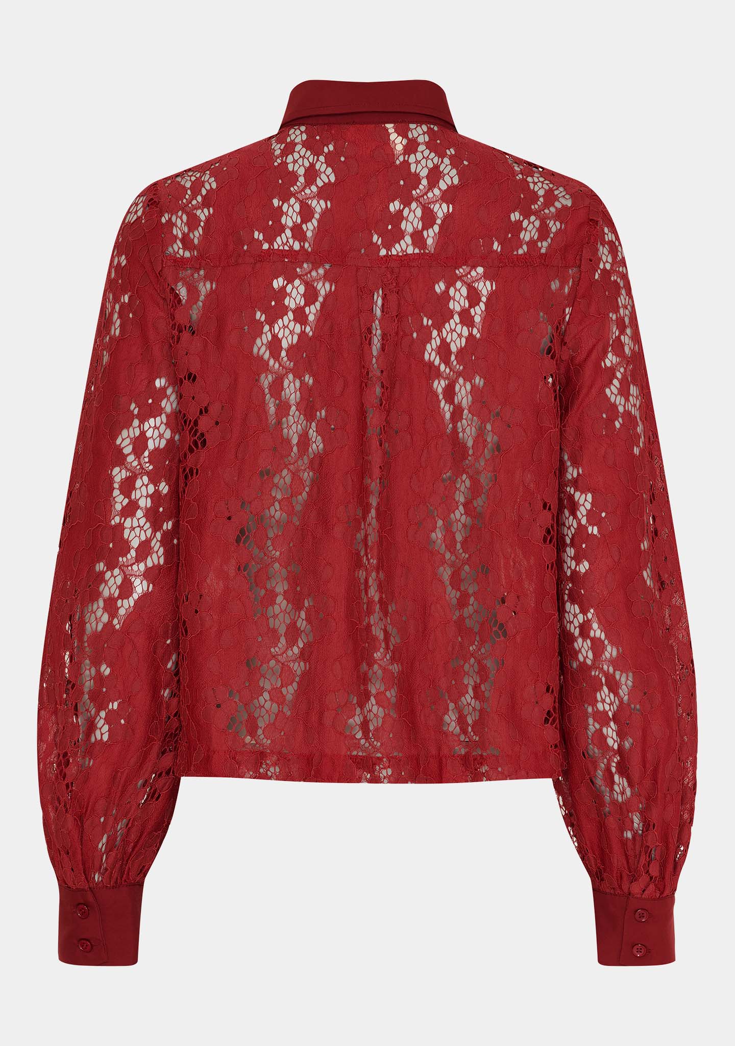 Kimie Lace Shirt is een elegant shirt met een moderne twist. Het is ontworpen in een prachtig kanten patroon dat een lichte en vrouwelijke transparantie biedt. De klassieke kraag en verborgen knoopsluiting maken het ontwerp tijdloos en verfijnd.