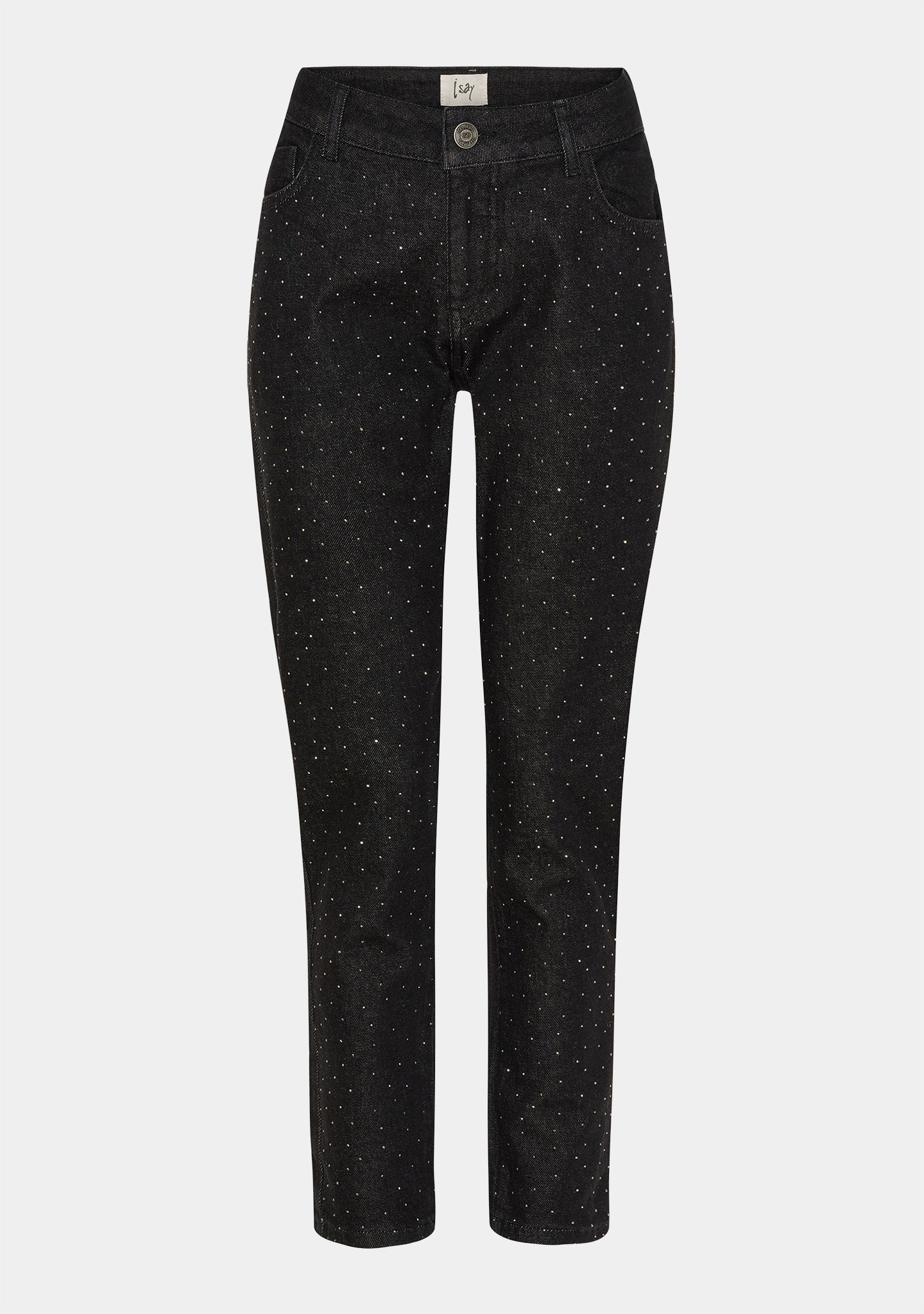 Lucca Shine Jeans is een paar klassieke slim jeans met een vleugje glamour. De fijne glinsterdetails voegen een elegant spel toe aan de stof, waarbij het licht wordt gevangen zonder overdreven te lijken.