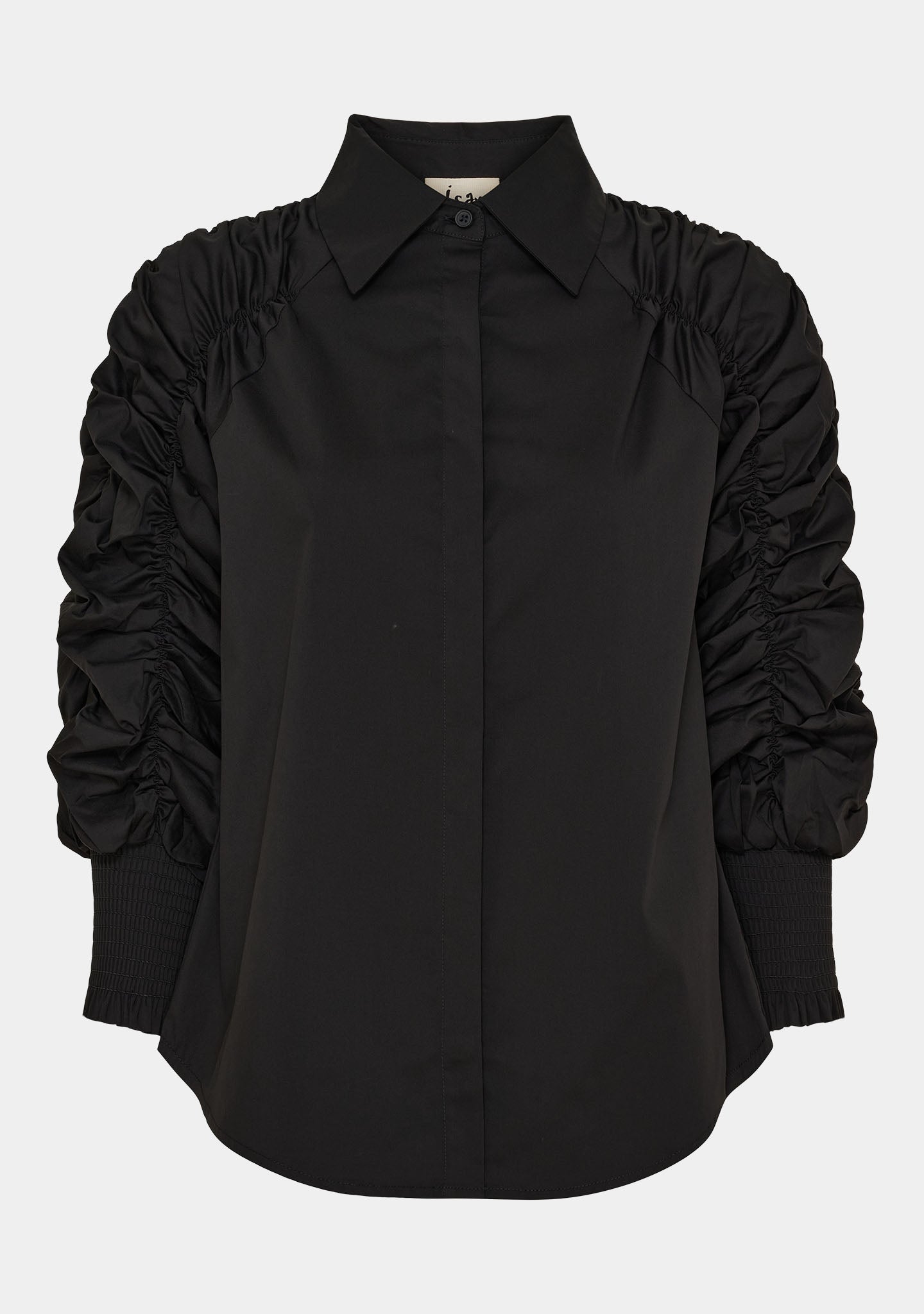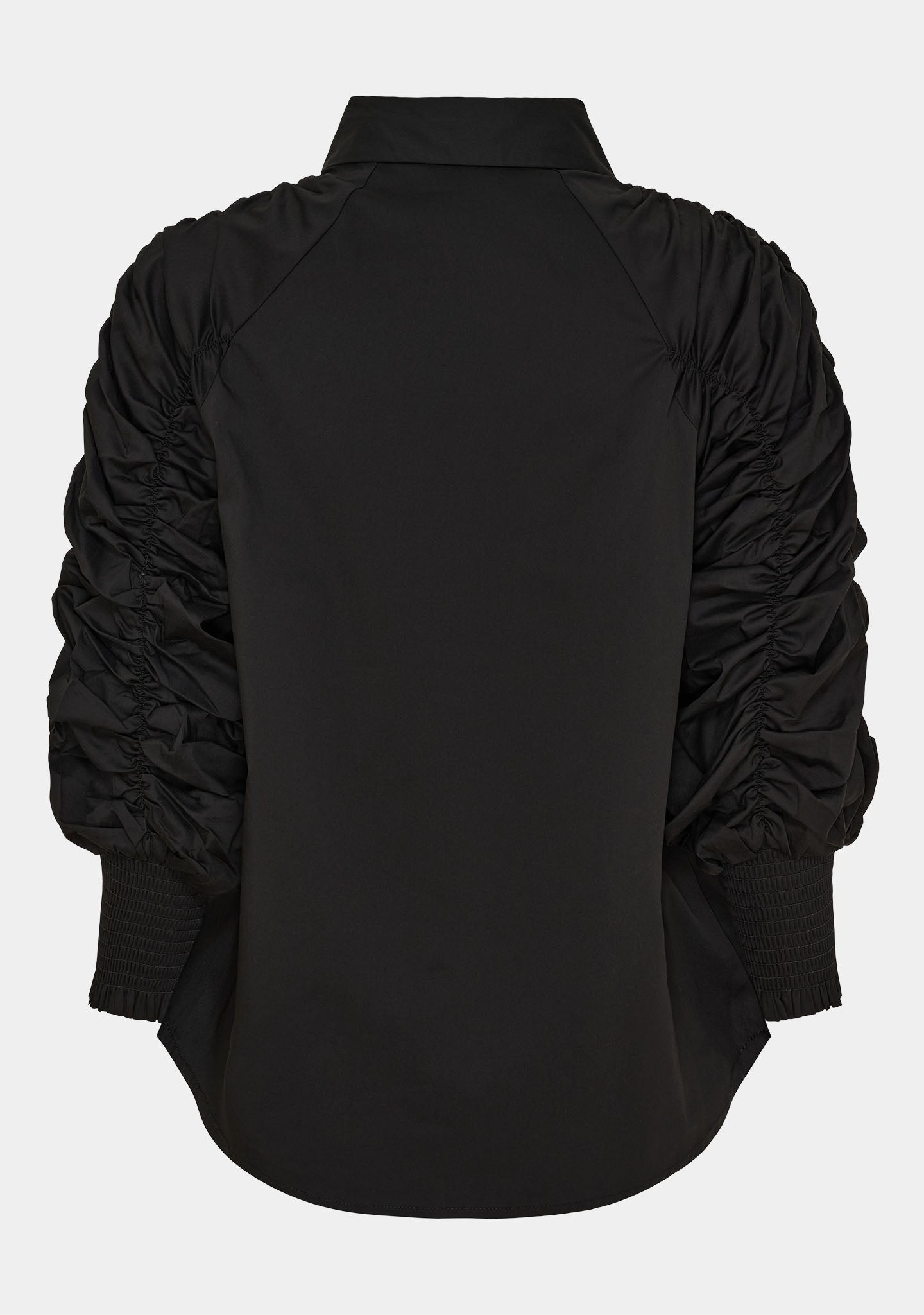 De Sigga Deco Shirt is een elegante blouse met een moderne twist. De opvallende geplooide details langs de mouwen geven een exclusieve en vrouwelijke uitstraling, terwijl de brede geribbelde manchetten een cool en ontspannen element toevoegen. De blouse is ontworpen in een knisperend katoenmengsel met stretch, wat zorgt voor een comfortabele pasvorm en gemakkelijk bewegen mogelijk maakt. Door de verborgen knoopsluiting aan de voorkant krijgt de blouse een strakke en tijdloze uitstraling, waardoor hij gemakkelijk te stylen is voor zowel dagelijkse als feestelijke gelegenheden.