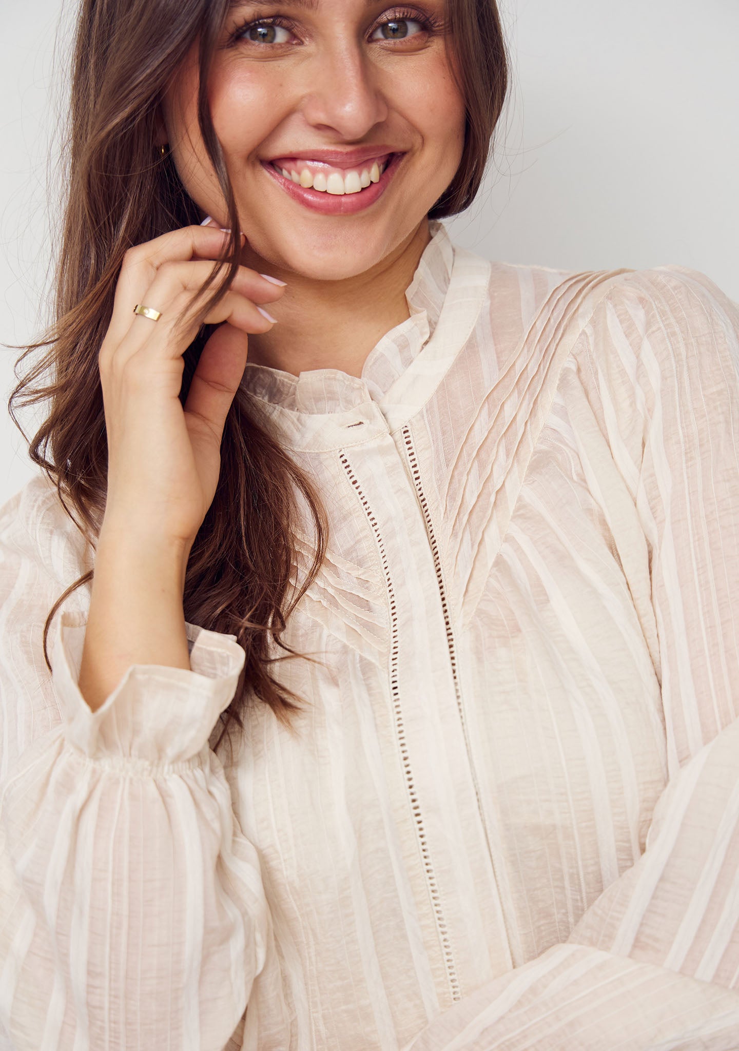 Jazz Shirt is een romantische interpretatie van de klassieke blouse - perfect voor degenen die houden van fijne details en een vrouwelijke touch. Met zijn zachte ruches, discrete structuurweving en delicate juk langs de borst straalt hij geraffineerde charme en tijdloze stijl uit. De combinatie van modal en TENCEL™ maakt de blouse lichtgewicht en ademend met een zijdezachte textuur die comfortabel aanvoelt op de huid. Bovendien staan de TENCEL™-vezels bekend om hun milieuvriendelijke productie - een extra voordeel als je geeft om duurzame keuzes. Waarom je ervan zult houden: Jazz Shirt heeft de perfecte mix van romantiek en moderne elegantie. Het kan gemakkelijk chique of casual gedragen worden en zal al snel een favoriet in je garderobe zijn waar je altijd naar terugkeert.