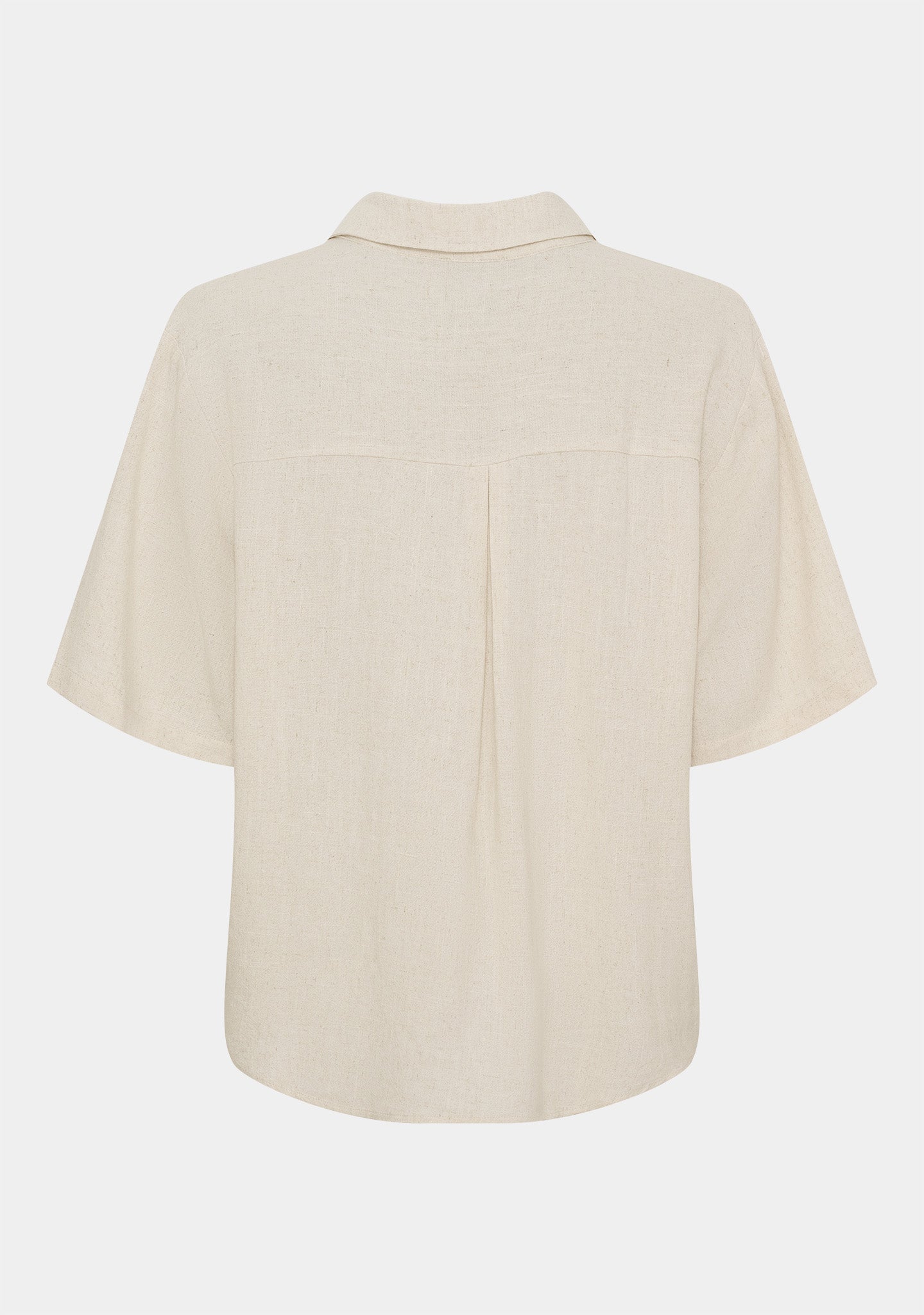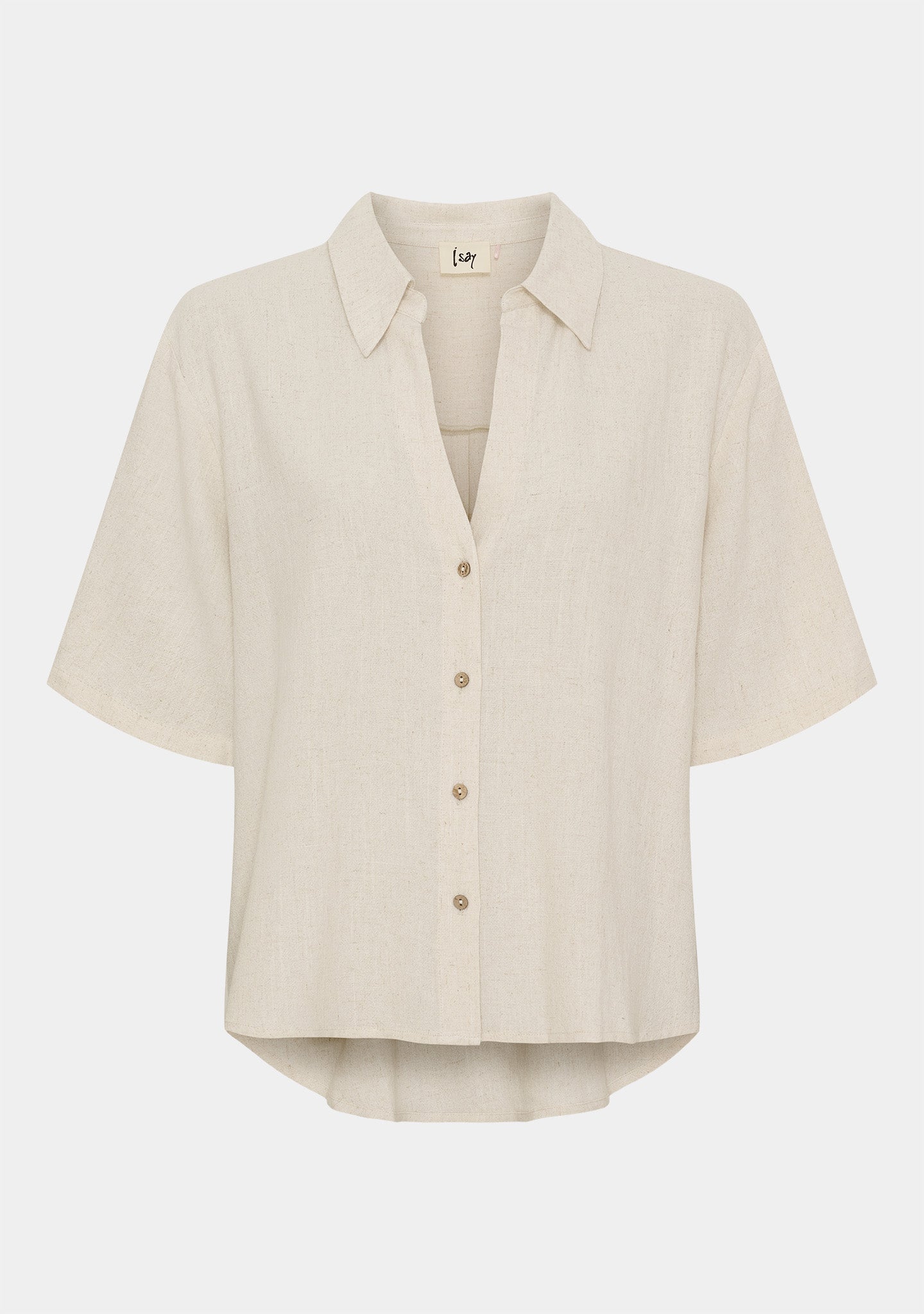 Pearl s/s Shirt is een tijdloos en elegant shirt, perfect voor de moderne vrouw die zowel comfort als stijl wenst. De lichte linnen/viscose mix zorgt voor ademend vermogen en een natuurlijke val, terwijl de losse pasvorm een ontspannen maar toch verfijnde uitstraling creëert. De korte, wijde mouwen voegen een moderne touch toe, waardoor het shirt veelzijdig is en makkelijk te stylen.