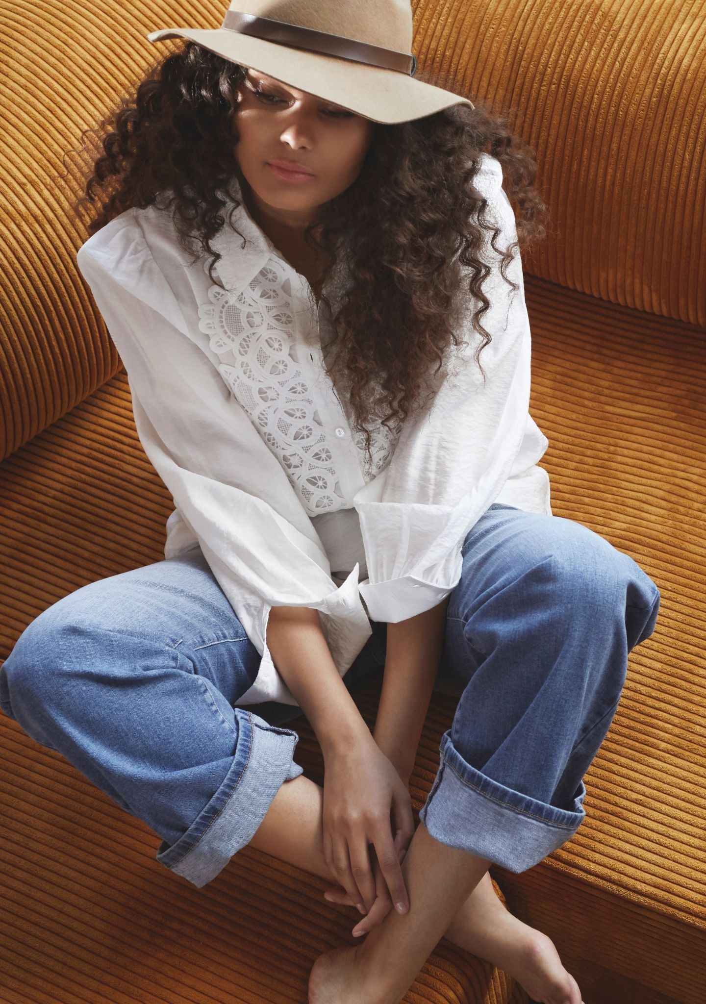 De kwaliteit is licht en licht transparant, waardoor het shirt een luchtige en elegante uitstraling krijgt. We raden aan om een eenvoudige top eronder te dragen voor een meer bedekte look. De stof valt zachtjes om het lichaam en voelt comfortabel aan op de huid. De figuurnaden bij de buste geven het shirt vorm, zodat het niet zomaar hangt – het volgt het lichaam op een natuurlijke manier en creëert een vrouwelijke silhouet zonder te strak te zitten.